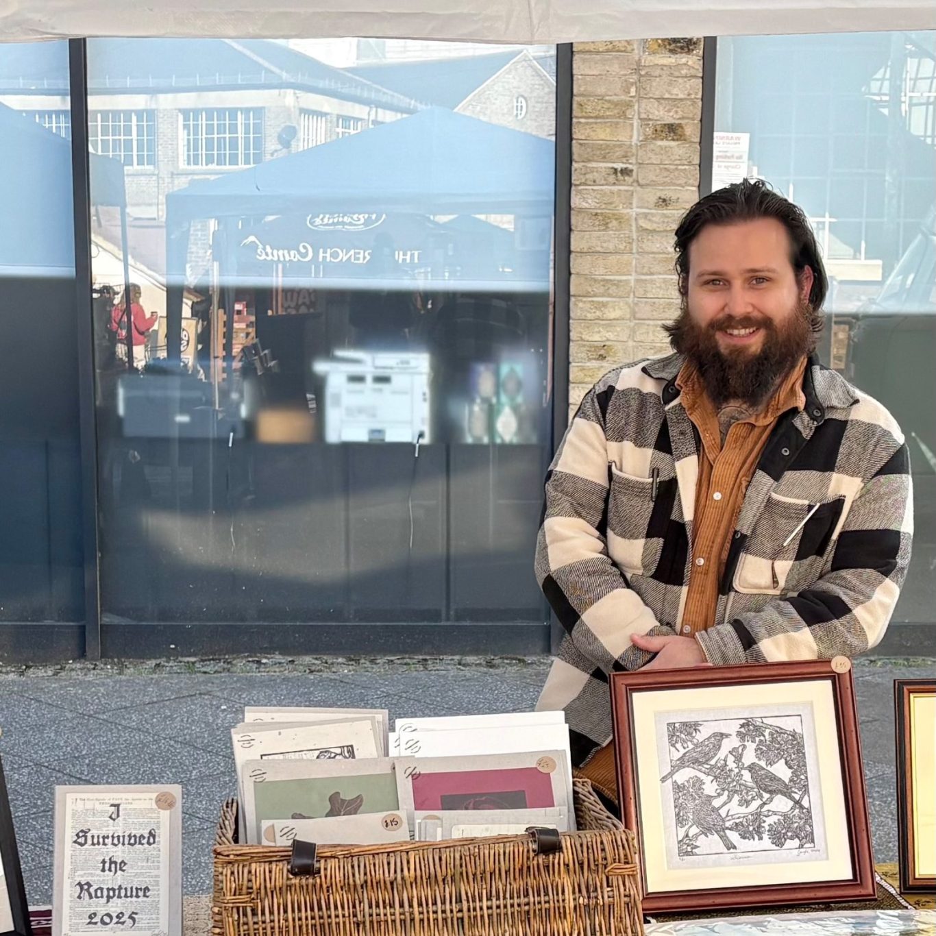 Designing digital prints, merch, and custom drawing and lino print projects. Get in touch to discuss your piece!